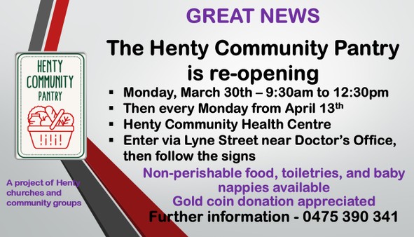 All proceeds go towards scripture for Henty and Culcairn public schools, including Billabong HS.