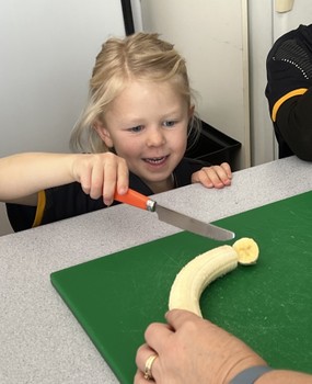 We enjoyed another Kinder transition on Wednesday, with the theme of Fruit Salad. Of course, we had to make some fruit salad!